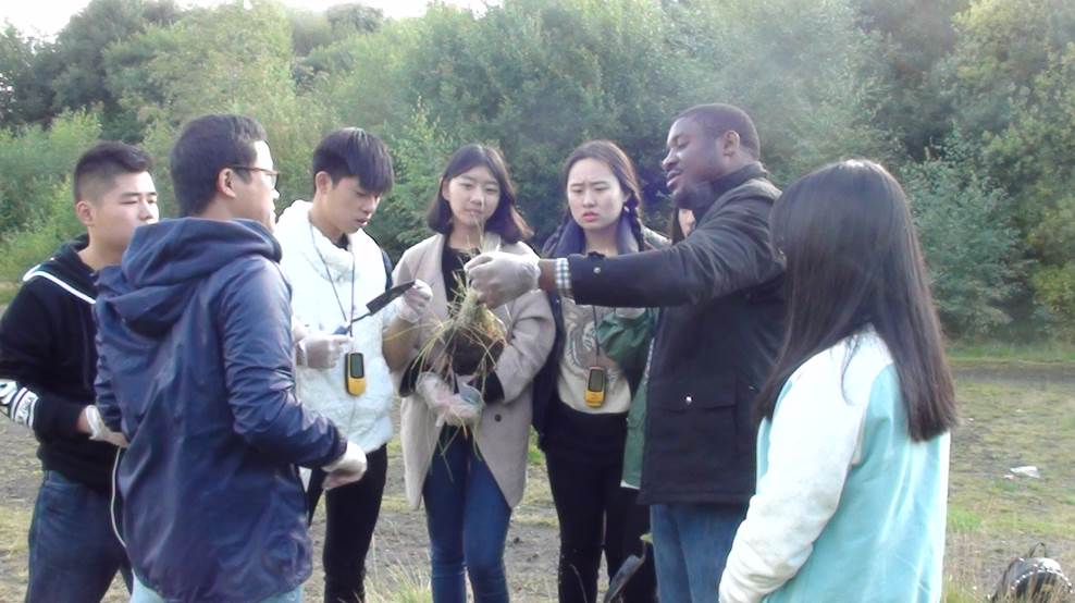两位博士分别热情耐心地示范了GPS定位仪的使用和土壤、植物样品的采集方法。今天我们不仅学会了如何确立采样点位,学会使用GPS定位仪进行采样点位置的确立,学会了植物和土壤样品的采集和保存,每个样品都做了标记和记录,经两位博士检查无误后带回University of Salford大学实验室,进行下一步样品的预处理与检测工作。我们一共确定三个采样点位,采集了三个土壤样品和三个植物样品,工作一天,我们与两位博士余兴未尽,一起快乐在学校餐厅就餐。