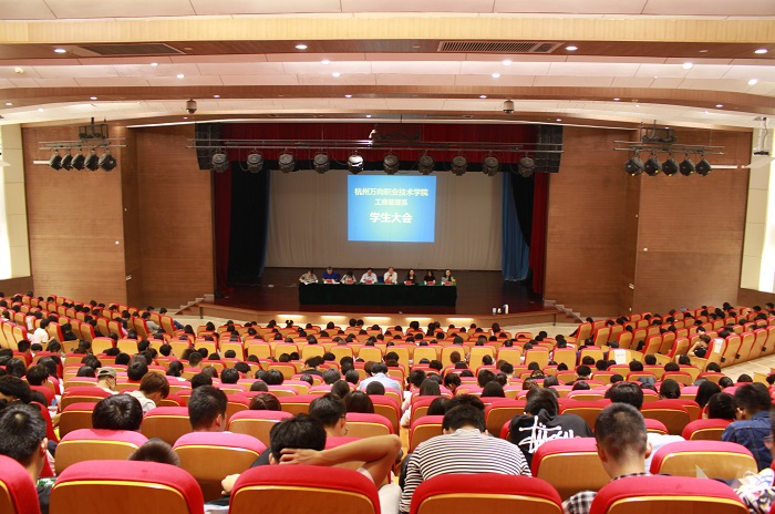 大会伊始,章建新主任就我系的各专业建设规划、发展现状、业态特征等方面做了详细的介绍和分析,对同学们提出几点现实要求。针对会计专业,他要求同学们从刚踏入大学开始就要明确“考证”目标,在庞大的就业压力下将主动权握在自己手中;针对杭州市产学对接的酒店专业,要充分利用好学校的校企资源和把握未来新兴就业方向;针对工商和连锁经营专业,要通过不断学习,立足创新,掌握企业管理工作者的特点和模式。他还鼓励同学们要树立正确的职业理想和职业目标,无论是专升本、留学、自主创业还是直接就业,都需养成良好的学习习惯,脚踏实地走好每一步。
