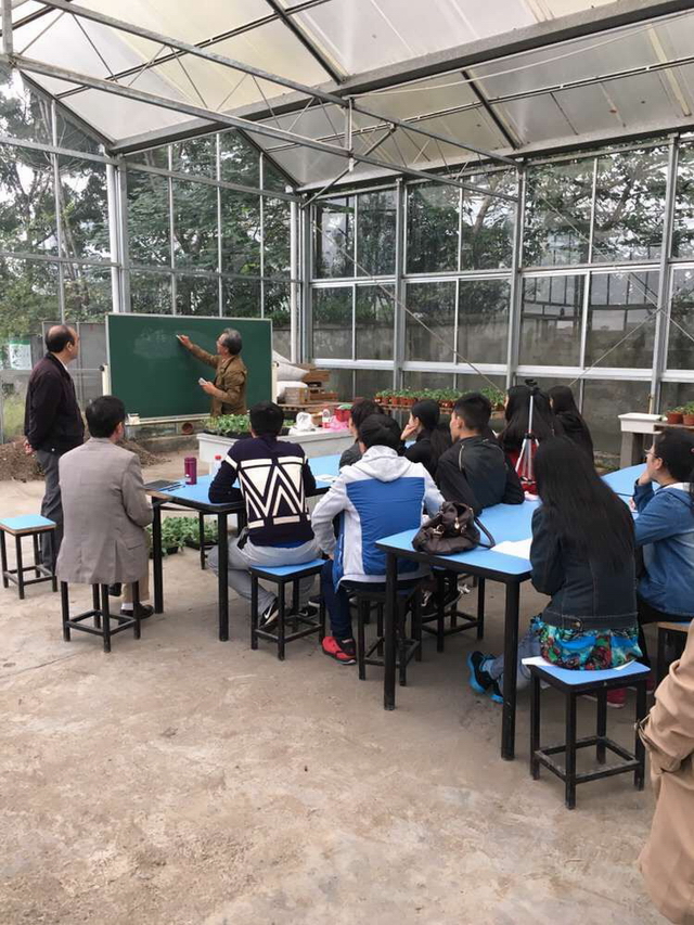 培训开始后,西村老师先从瓜果类蔬菜砧木的选取、接穗的选择、基质的配比及消毒、嫁接苗床的布置及嫁接操作的具体要领等5方面进行了详细的讲解,然后亲手示范黄瓜苗的嫁接操作,最后安排在场所有师生进行黄瓜苗的嫁接操作,逐一进行点评及错误纠正。经过3个小时的培训、操作及交流讨论,园艺技术师生进一步了解及基本掌握了瓜果类蔬菜嫁接操作原理及方法,受益匪浅。