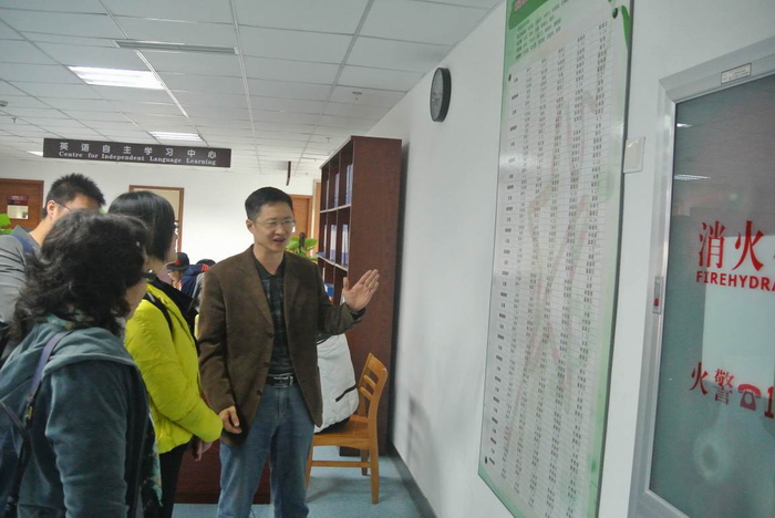上午9:00,上海工艺美术职业学院考察组一行14人在学院图书馆与我院英语教学团队进行了交流。李德贵副主任首先带领考察组参观了建设中的英语自主学习中心,就英语自主学习中心的理念设想、建设步骤、问题难关、未来愿景等向客人进行了具体的讲解。接着双方针对英语教学的特色定位、团队建设、模式改革、外教管理、英语竞赛等方面进行了坦率而有效率的交流。李德贵副主任强调目前我院英语教学改革立足于从“teaching”向“learning”的转变,各项教学设置、教学改革以及自主学习中心建设均聚焦于学生的学习过程,面对“互联网+”时代下的英语学习者,我们要让学生英语学习更便捷、更容易、更有效。