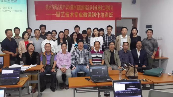 随着“翻转课堂”不断冲击着传统课堂教学模式,“微课视频”的制作越来越成为现代教师必备的专业技能。根据“杭州市属高校产学对接中高职衔接示范专业建设工程项目---园艺技术专业”项目建设规划,为进一步深化教育教学改革、有效提高现代化教育教学手段的使用效率和丰富中高职合理衔接的内涵建设,于2015年10月17―18日项目组在Beat365唯一官方网站举办了微课制作培训班。Beat365唯一官方网站、杭州旅游职业学校、桐庐县职业技术学校、建德新安江职业技术学校四所项目共建院校园艺园林专业30余名专业教师参加了培训。