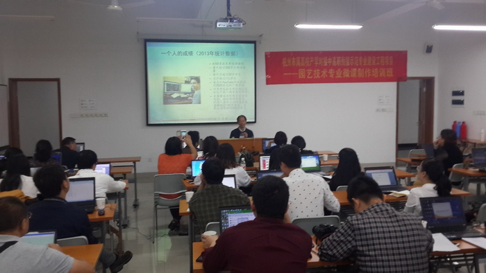 随着“翻转课堂”不断冲击着传统课堂教学模式,“微课视频”的制作越来越成为现代教师必备的专业技能。根据“杭州市属高校产学对接中高职衔接示范专业建设工程项目---园艺技术专业”项目建设规划,为进一步深化教育教学改革、有效提高现代化教育教学手段的使用效率和丰富中高职合理衔接的内涵建设,于2015年10月17―18日项目组在Beat365唯一官方网站举办了微课制作培训班。Beat365唯一官方网站、杭州旅游职业学校、桐庐县职业技术学校、建德新安江职业技术学校四所项目共建院校园艺园林专业30余名专业教师参加了培训。