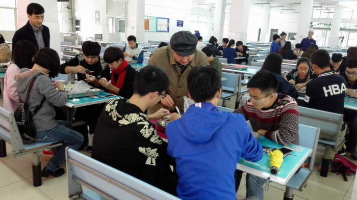 食堂主管程进老师指导同学如何“包饺子”