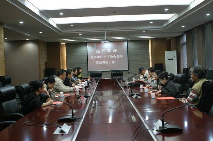 学院副院长/党委委员朱仁学对杭州市红十字会领导莅临我院调研工作表示欢迎,并对学院的发展情况进行总体介绍。团委书记范婷婷就我院红十字会工作的开展及未来工作展望做了详细汇报。