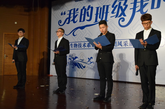 为强化共青团员意识,同时让班级秀出风采,增强凝聚力,经过一个多月的精心筹备,12月7日,由生物技术系团总支主办的首届班团风采展示大赛决赛在2号校区小报告厅隆重举行。学院党委委员、副院长朱仁学教授,学生发展处副处长徐佩兰老师,学院团委书记范婷婷老师及班主任代表观看了比赛,学生发展处副处长严鹏老师、生物技术系副主任应瑶老师、院办吴丹枫老师、生物技术系辅导员吕楠老师担任评委。
