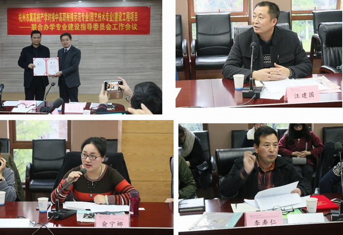 本次联合办学指导委员会及拟建专业指导委员会聘请了园艺园林与农资经营行业协会、企业、科研院所和培训机构等15位专家,朱仁学副院长为出席的各位行业企业专家颁发了专家指导委员会聘书,杭州市园林绿化行业协会办公室主任俞宁娜女士、建德市新安植保有限责任公司总经理汪建国先生分别代表两个行业发表了重要讲话,纷纷表示行业企业都有很高的积极性参与学院专业的建设与发展。会上企业专家对新建专业建设、联合办学专业提升发展进行了热烈的讨论,并从人才需求角度对产学对接的内涵、中高职合理衔接的路径以及专业与产业相融合的基本特征展开了深入的剖析,观点独特,切入要害,为产学对接项目与筹建专业的下一步工作指明了方向。