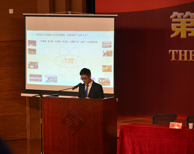 随后,第十三届院学生会主席陈啸同学代表第十三届学生会向大会做题为《团结引领广大同学为谱写“五事人才”、培育优秀品质与高素质技能型人才而不懈奋斗》的学生会工作报告。工作报告由“追忆往昔,我们互相扶持,团结一致勇向前”,“重温旧梦,我们踌躇满志,认真总结赴未来”,“展望未来,我们点燃希望,拥抱万向青春梦”三个篇章组成,对院学生会过去一年的工作进行了全面深入地总结,并对新一届学生会未来的工作提出了建设性的意见和建议。