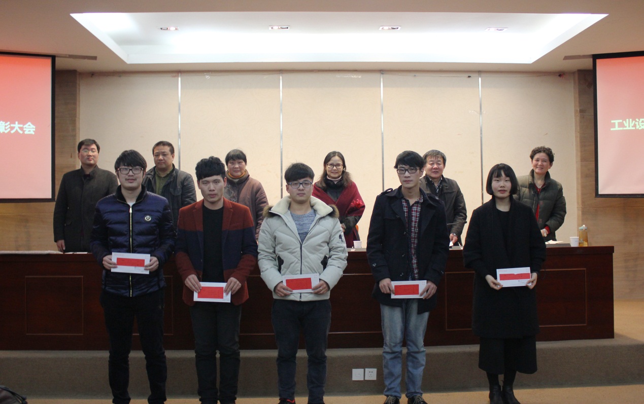 2015工业设计专业学生竞赛获奖表彰大会于2016年1月5日下午在1号校区小报告厅隆重举行。出席本次大会的有,副院长张琼、原学院总监陈玉娟、学生处处长杨人卫、应用工程系主任孙立波、应用工程系副主任姚林及工业设计团队全体教师。
