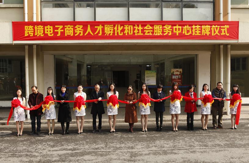 图5.跨境电商人才孵化和社会服务中心成立剪彩仪式