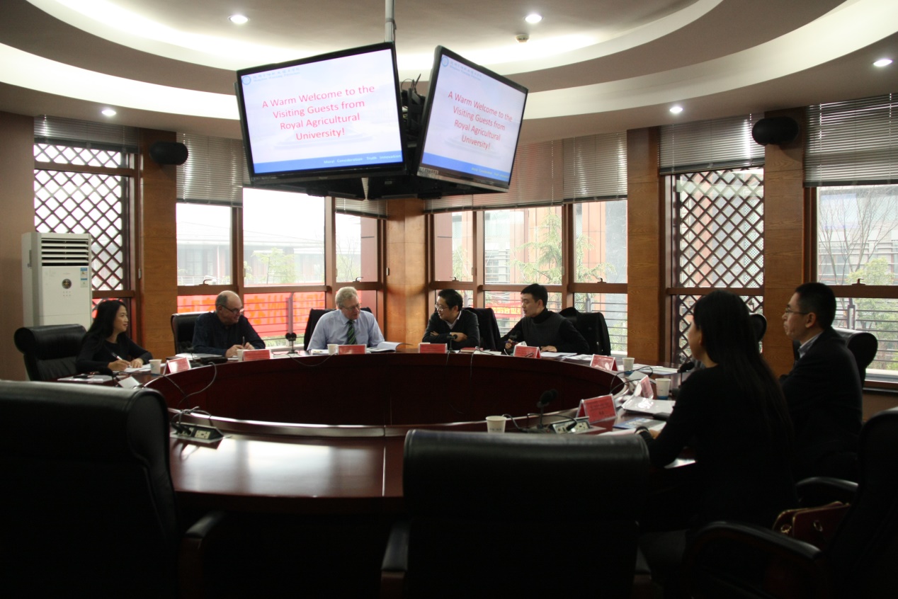 1月11日上午,英国皇家农学院首席副院长Paul.Davies教授、商务与企业关系系主任Stephen.Thomas与中国合作项目主任张俊萍女士一行三人前来学院访问交流并与我院签订合作备忘录。学院副院长朱仁学教授、生物技术系张海松教授、交流合作处副处长李辉老师、生物技术系团队负责人张霞老师参与接待并与英国客人座谈交流。