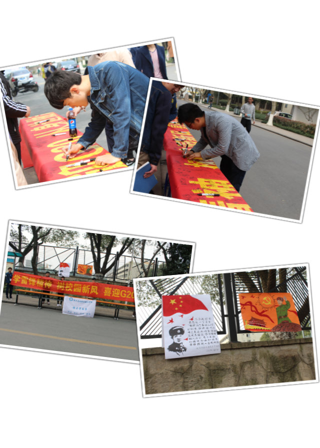 当G20峰会的喜讯传遍杭城,又逢一年一度的学雷锋日,为进一步弘扬雷锋精神,倡导校园和谐风气,形成我校文明礼仪的良好氛围。2016年3月4日,经济贸易系开展了“学雷锋横幅签名”活动。