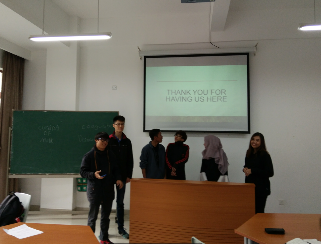 除了汇报学习内容,新加坡同学还分享了在中国的感受,他们非常开心来到我院学习,很高兴结识很多新朋友,体会到了杭州的风土人情和中国的一些历史文化,非常感谢食品专业老师及同学们对他们的指导和帮助。并表达了对我院学生将赴新加坡到访学习的期待,会以同样热情、友好的方式回报我院访学学生。