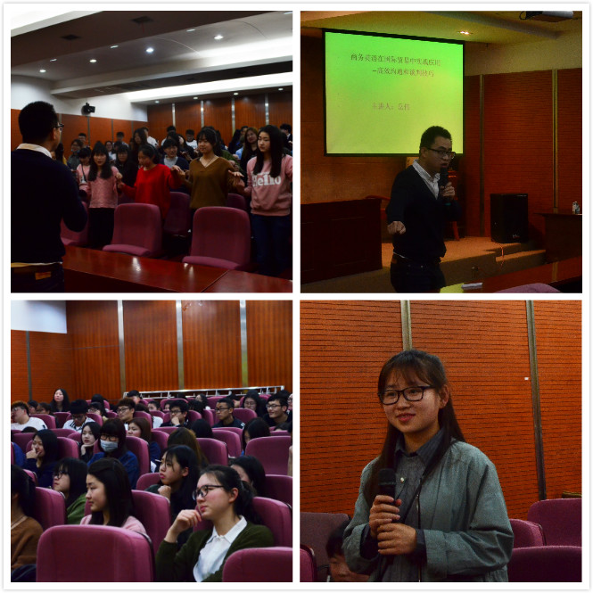 4月5日晚6点30分,来自杭州依悠科技有限公司的总经理岳伟先生为同学们举办了一场具有专业针对性的讲座---《商务英语在国际贸易中的实战应用---高效沟通和谈判技巧》。本场讲座,他从业务员应该如何取一个好的英文名字开始,生动和有趣的为大家讲解了如商务邮件的写法,以及提高客户回邮件的机率;接着他为大家分享了自己在外贸工作中与国外客户高效沟通和谈判的趣味案例,以及强调了英语口语在外贸工作中的重要性,让大家对于自己所学的专业有了更多的了解;最后,现场互动环节中,同学们对于毕业后的就业问题、英语口语学习问题向岳伟先生进行了提问,岳伟先生结合自己一路走来的历程为大家做了精彩的回答。整场讲座持续2个小时,共120多位同学到场聆听了本次讲座。