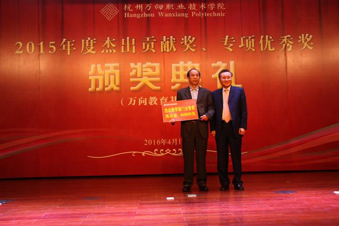 “杰出贡献奖”以及“专项优秀奖”是由万向教育基金资助,旨在奖励本年度内提升学院内涵与实力、教学与科研、品牌与形象,推进学院国际化进程,促进学院长期良性发展等方面做出有全面性杰出贡献、具有优良师德师风的教职工。激励教职员超越自我,在教职员中树立学习模范。