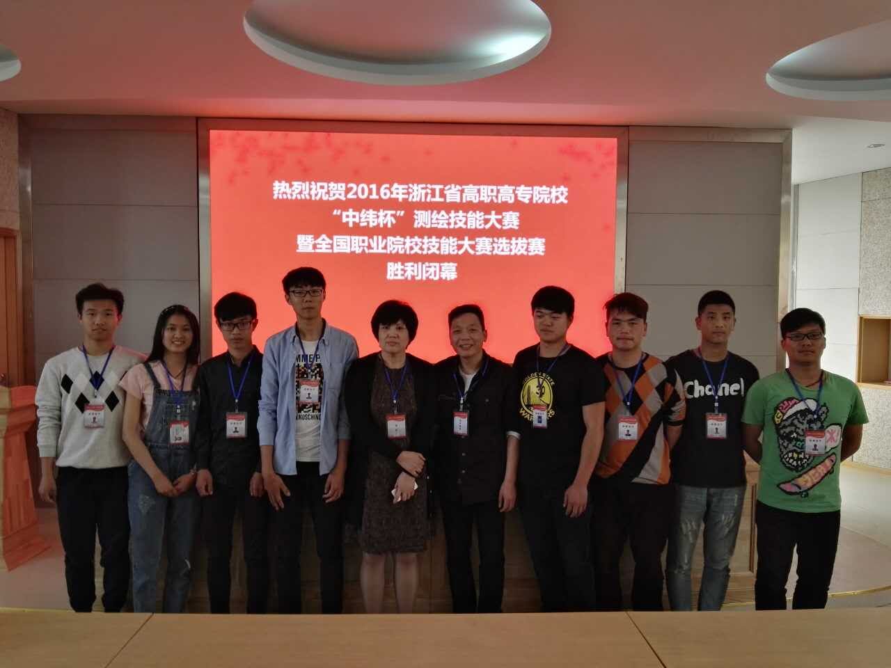 2016年4月15日浙江省高职高专院校“中纬杯”测绘技能大赛暨全国职业院校技能大赛选拔赛在浙江建设职业技术学院隆重举行。房产团队负责人刘晶老师和指导教师张一品老师带领专业10名学生参加了本次赛事。在20个参赛院校39支代表队激烈竞争中,教师学生克服器材不够、场地不熟、抽签不利等因素,发扬拼搏精神,战胜参赛强劲对手斩获佳绩:取得了单项二等奖一项,三等奖三项。