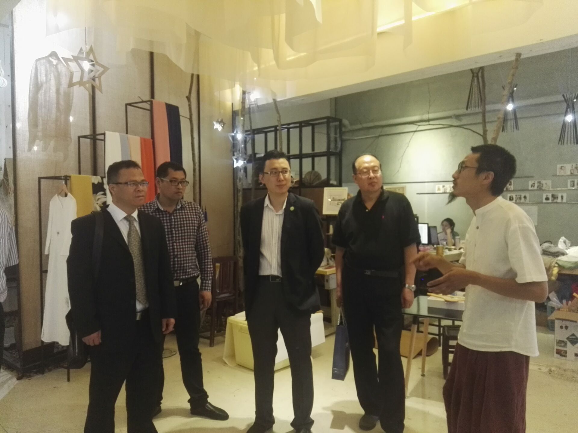 在王建新副院长的陪同下,张国庆院长一行参观了创业分院、创意设计大楼及中国网店第一村(青岩刘),听取了相关负责人的情况介绍,对师生们取得的成果表示钦佩。我院章建新和高兰二位系主任也分别与创业学院的师生们进行了交流。