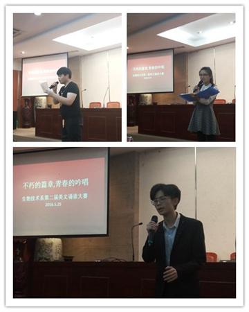 5月25日晚,读书节开幕活动“不朽的篇章,青春的吟诵”美文诵读大赛在1号校区报告厅隆重举行。比赛现场气氛热烈,从预选赛脱颖而出的8位选手以饱满的激情、激昂的语言、大方得体的举止来展现自己的实力,充分展示了生物系学子的青春风采。经过两轮激烈的角逐,园艺152班何益杭同学荣获一等奖,园艺152班朱清媛同学和食品152班项佳臣同学分获二、三等奖。
