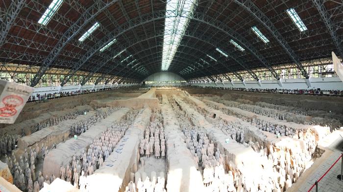 7月30日,同学们来到被誉为“世界第八大奇迹”之一的[秦始皇兵马俑博物馆。首先参观了一号展厅,映入眼帘的即是数百个已经出土的兵马俑,兵马俑的塑造,基本上以现实生活为基础,手法细腻、明快。每个陶俑的装束、神态都不一样。人物的发式就有许多种,手势也各不相同,面部的表情更是各有差异。从他们的装束、神情和手势就可以判断出是官还是兵,是步兵还是骑兵。总体而言,所有的秦俑面容中都流露出秦人独有的威严与从容,具有鲜明的个性和强烈的时代特征。