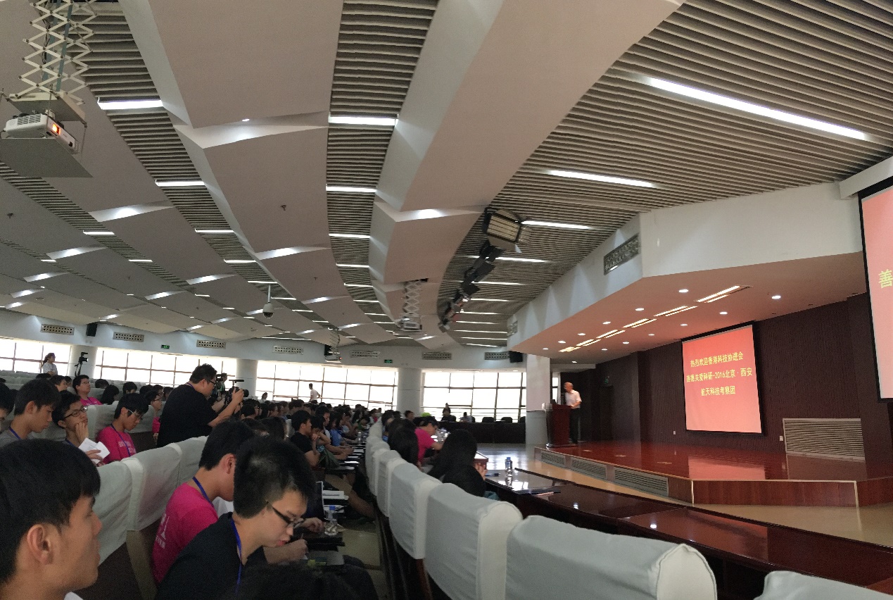 下午考察团一行来到西安光机所,首先赵卫所长代表研究所对考察团表示了欢迎,并介绍了研究所的概况。科技与管理部部长谢小平先生对航天工程所涵盖的研究范围进行了讲解,航天的范围很广,总体分为三部分:运载工程(火箭)、平台工程(卫星)、载核技术。在北京同学们已学习了前两部分,而今天将领略的是载核技术,该技术包括视觉为主的设备和分析物质成份的光谱设备。之后由曹总经理汇报了西安关机所创新创业工作情况,主要贯彻“硬科学”思想,要使国家强大,必须自力更生,树立创新自信。