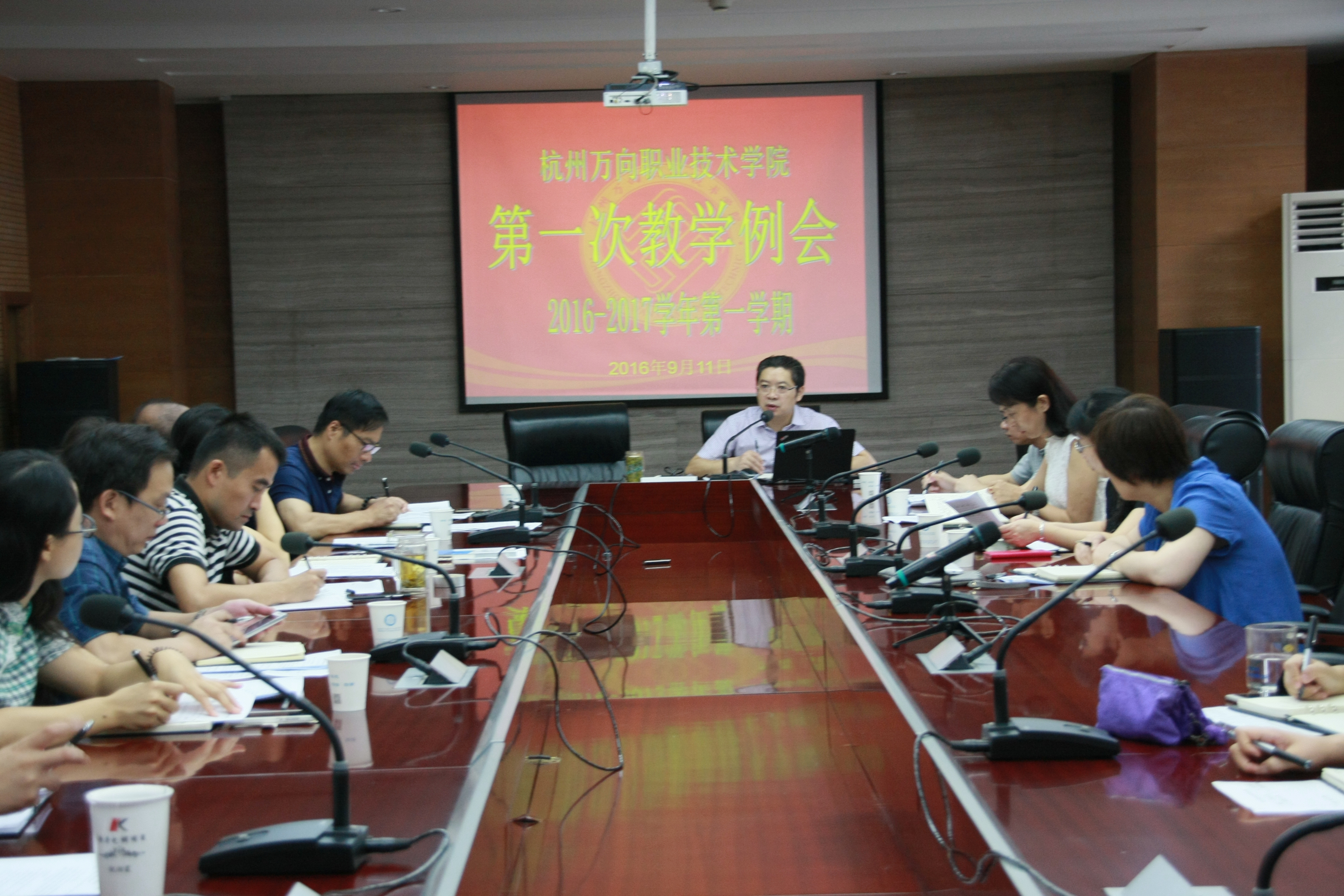 各学系首先就学期初教师到岗、教材建设、“导师制”安排、排课和期初补考等工作进行了汇报。G20峰会后,学院期初教学工作安排井然有序,各项教学任务落实到位。其次,教务处对本学期教学重点工作和近期工作做出了布署。胡建华代行处长对产学对接、“双师”认定和实训安排等工作进行了布置;王海慧副处长详细阐述了2016年人才培养方案的修订指导意见,并请各学系及专业团队按时按质完成编制工作。朱晓峰副处长就科研项目申报、素质保障工作及数据采集工作安排进行了说明。