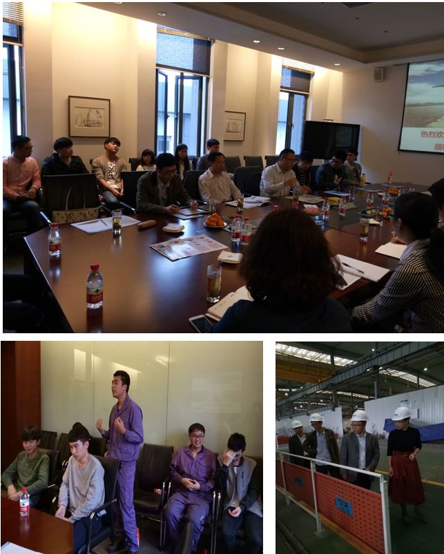 首先,以西子人力资源部郑霞部长为首的西子重工有限公司的同仁们向四位老师详细介绍了西子重工的产品、业务、人员管理等信息进行了详细的介绍,使大家对西子重工有一个全面的认识;然后,四位老师和学生进行了交谈,对学生实习的岗位,薪资,有什么困难和想法等进行了解,学生们都表示在此工作能学到很多技能,很充实;再后,四位老师在郑霞部长、纪翔、陈楼娣主任的陪同下对西子重工的生产车间进行了实地考察,张院长对西子公司的生产和人员的科学管理给予了肯定,同时也对公司的智能化、信息化生产提出了中肯的建议。最后,西子重工和万向学院对双方的校企合作都表示非常满意,愿意更进一步的深化双方的合作!