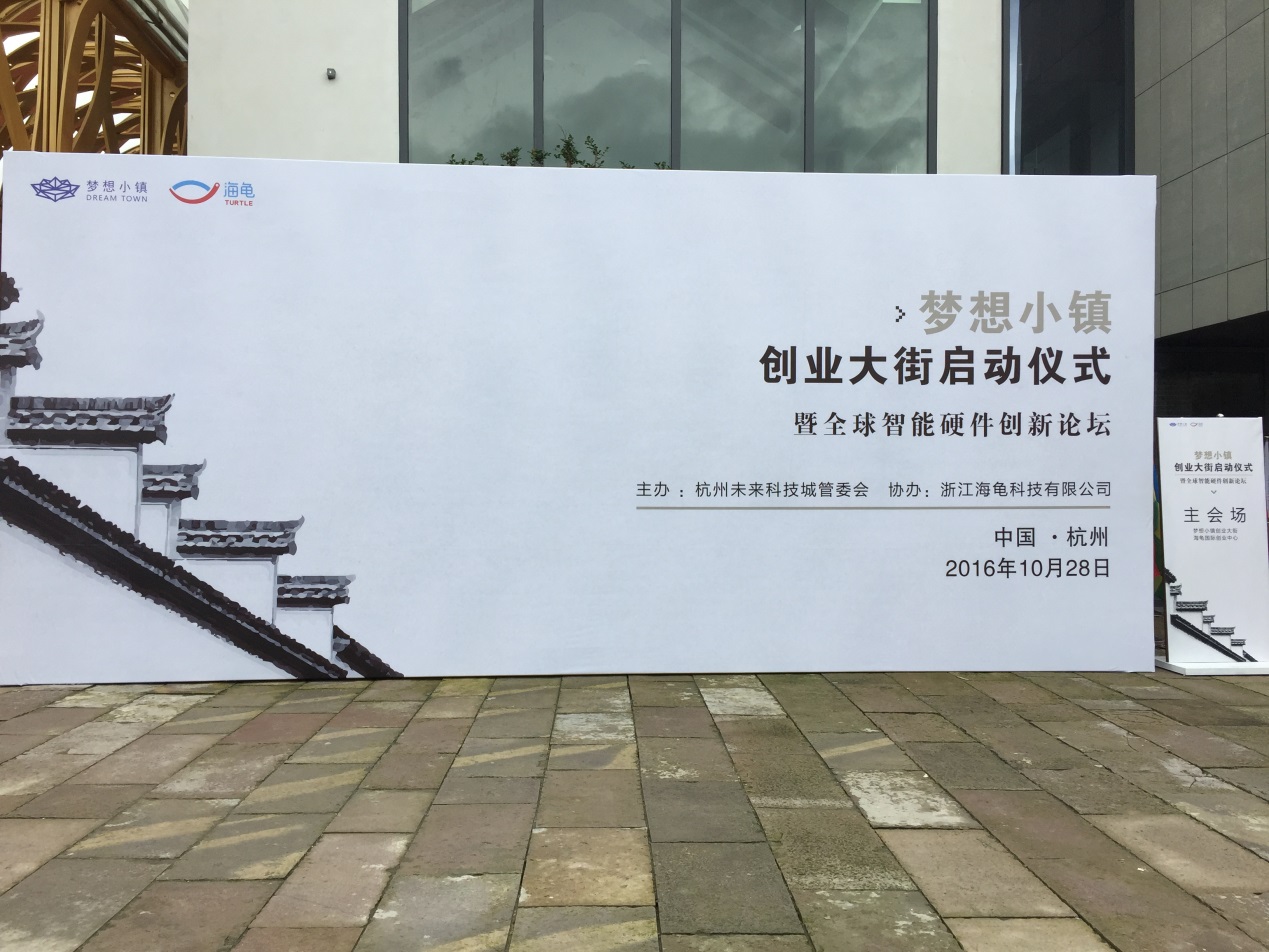 此次“梦想小镇创业大街启动仪式暨全球智能硬件创新论坛”由杭州未来科技城管委会主办,浙江海龟科技有限公司协办,于10月28日上午在梦想小镇创业大街举行。出席启动仪式的有杭州市委常委、余杭区委书记徐文光,杭州城西科创产业集聚区主任陈永良,余杭区区长朱华,余杭区人大主任汪宏儿,余杭区委常委、常务副区长祝振伟,杭州未来科技城(海创园)党工委副书记、管委会主任陈夏林等领导出席启动仪式,浙江海龟科技有限公司董事长傅智建作为运营商代表出席启动仪式。
