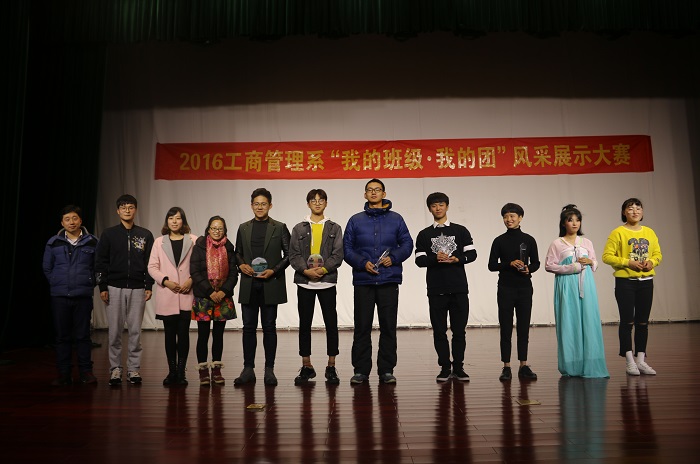 为了丰富同学们的校园生活,增强班级凝聚力,发挥学生艺术兴趣与特长,营造良好的学习氛围,11月29日晚,由工商管理系团总支举办的第一届“我的班级・我的团”班级风采创建大赛在新校区大报告厅精彩上演,工商管理系团总支书记许一鸣老师、黄喜娟老师、武晓鹏老师、通识教育系张瑞老师出席并担任大赛评委。
