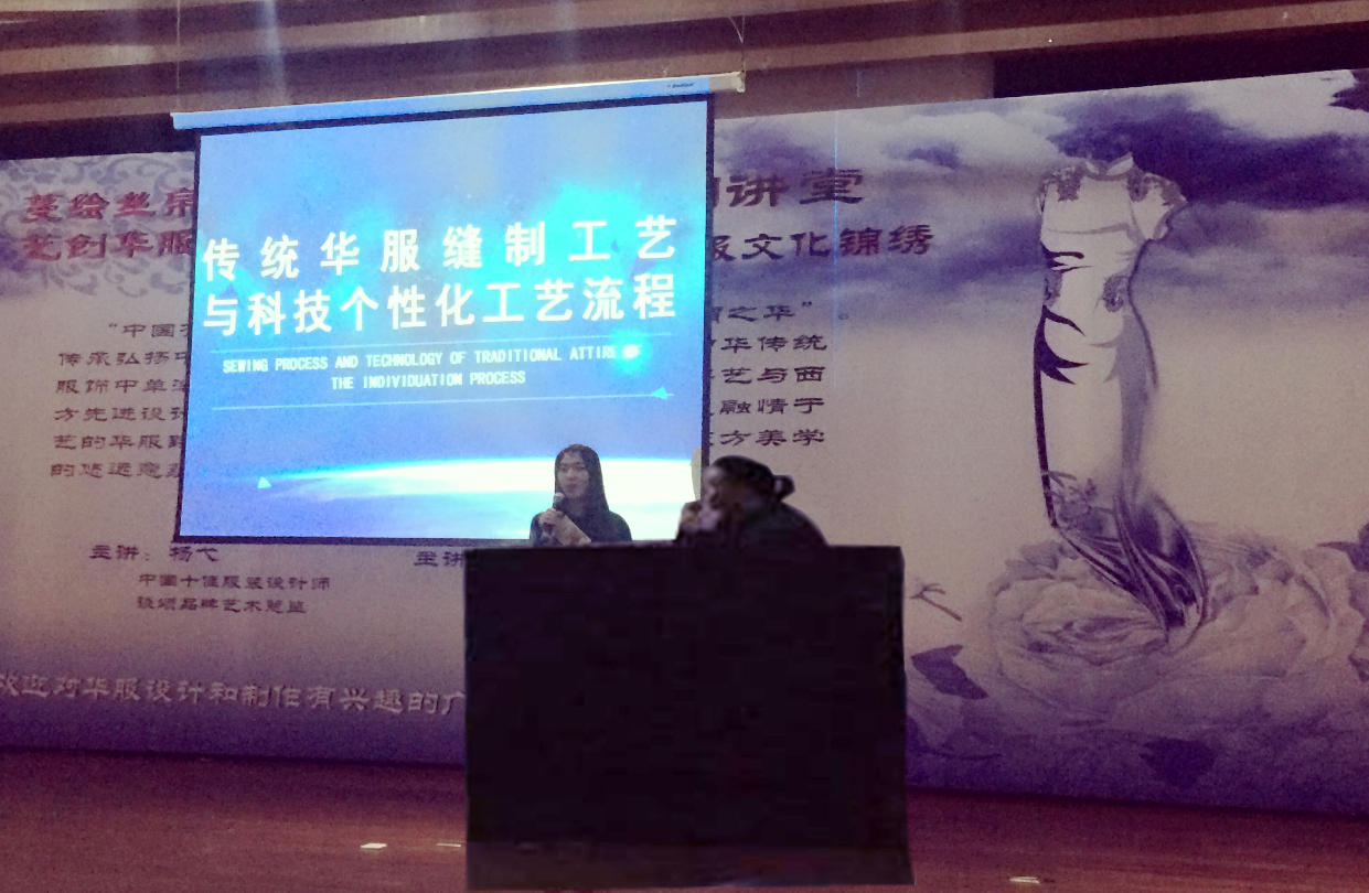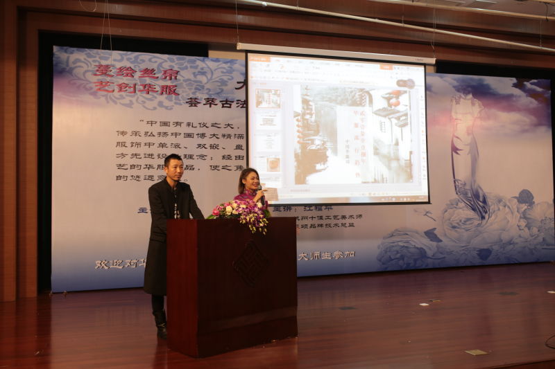 2016年11月21日下午2点,应用工程系服装设计与工艺专业“大型华服系列讲堂”如期在我院2号校区小报告厅举办。本次讲堂由我院应用工程系、服装设计与工艺专业主办,邀请到杭州华服产业领军专家、华服高端定制品牌“谈颂服饰”、杭州梦至超服饰有限公司、杭州威芸实业有限公司等企业专家莅临现场;应用工程系领导、全体服装专业学生及喜爱华服艺术的学院师生参加前往,共同分享华服织造技艺,探讨华服艺术创新。