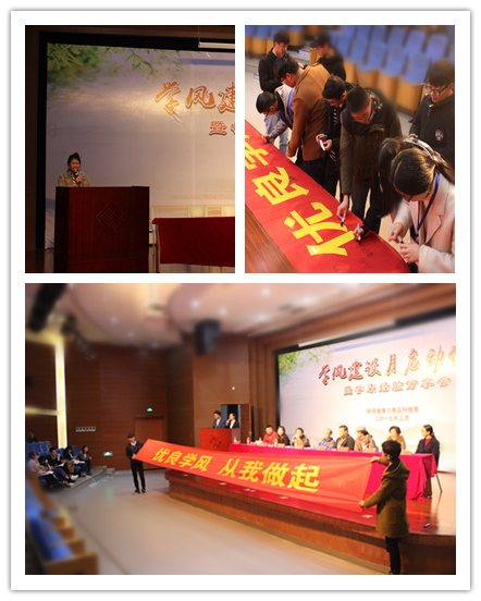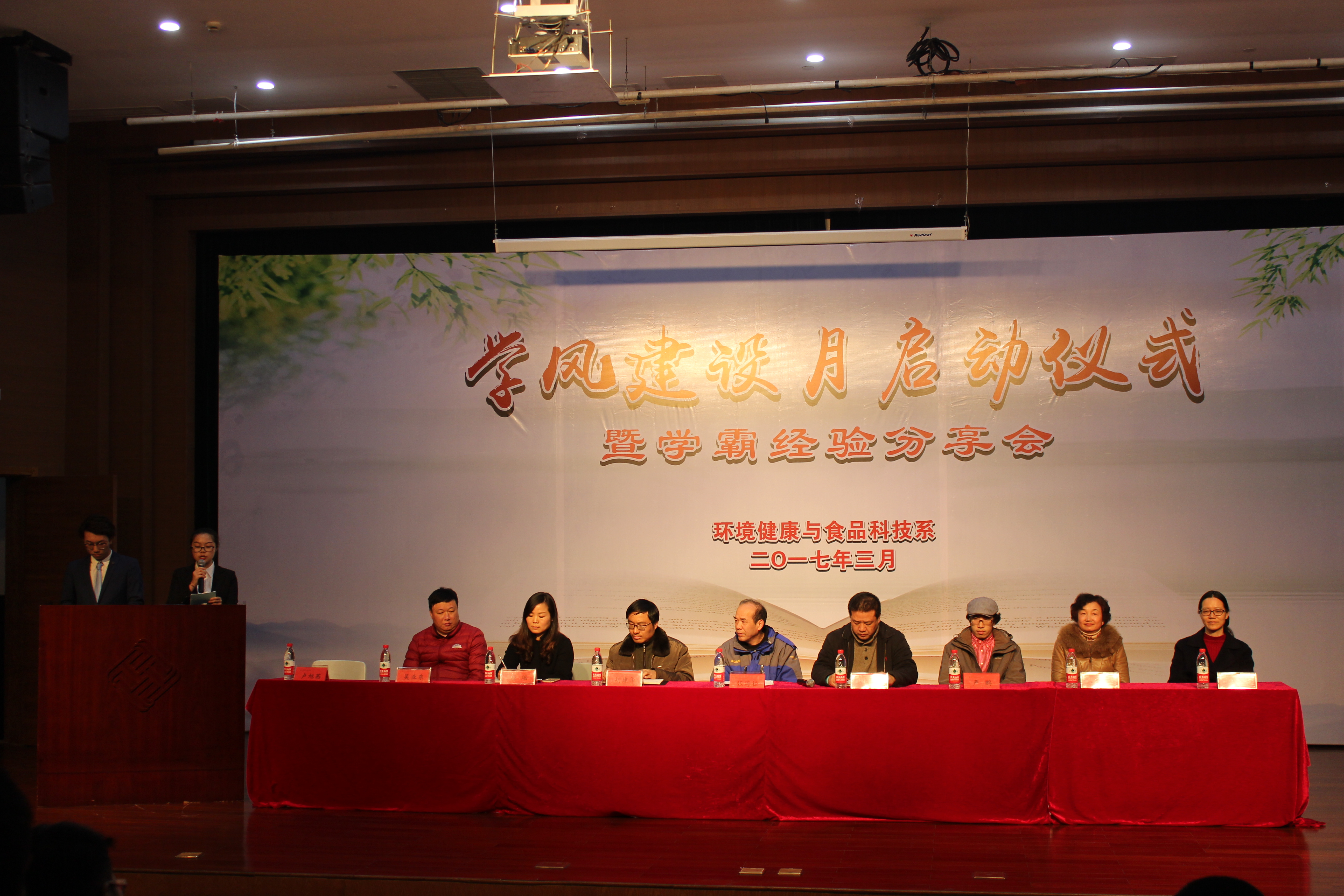 3月20日下午,环境健康与食品科技系学风建设月启动仪式暨学霸经验分享会在新校区小报告厅举行。系主任张海松教授、学生发展处处长杨人卫老师、教务处代行处长胡建华老师、学生发展处副处长严鹏老师、系副主任应瑶老师、学系各专业团队负责人及辅导员、团学干部、各班学生代表出席活动。本次学风建设月将持续至4月20日,以全面贯彻全国高校思想政治工作会议精神为指导,通过建设活动达到学风明显改善,以更好的状态迎接浙江省教育厅巡视组巡视。