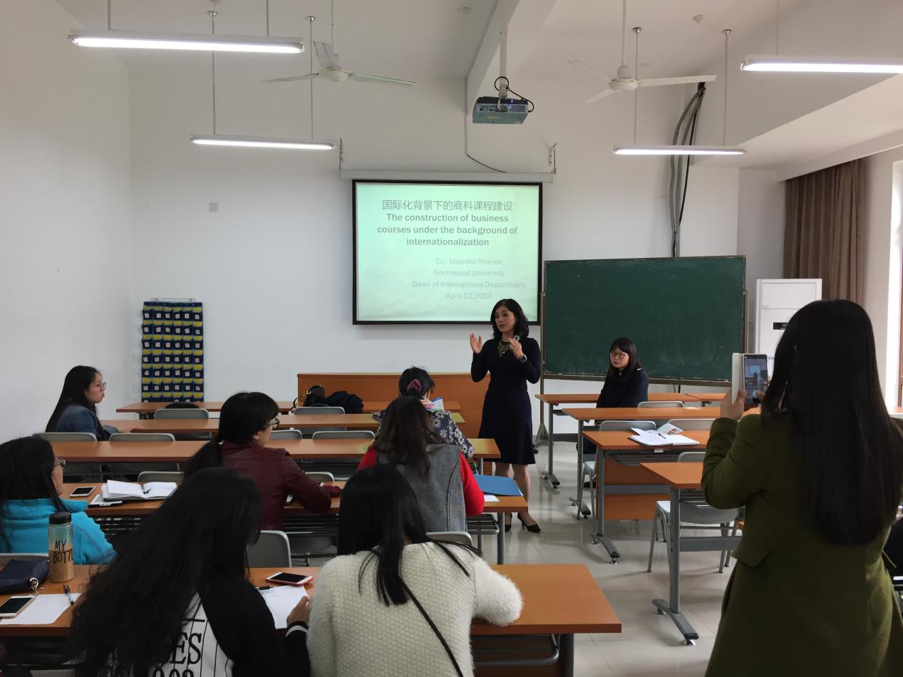 4月12日下午,工商系举办“国际化背景下商科课程设计和评估”讲座,美国密歇根州Northwood University (以下简称NU,是一所商科大学)国际部负责人Mamiko Revees 博士从NU的课程结构、考评方式、国际化对每个老师意味着什么、国际化的远景等方面为工商系会计、工商管理、酒店管理、连锁经营管理等专业的教师做了讲解,并就相关主题进行了良好沟通。工商系主任在讲座动员和总结时,要求全体专业教师切实落实学院战略规划,特别是要落实好国际化战略,通过国际化提升专业建设和课程建设水平。要通过方案衔接,课程对接,学分互认,学生互派,实现专业的国际化提升。宋主任还要求策划好外方专家的系列讲座,精心准备,提高质量,提高全体教师的国际化认识和相关技能。