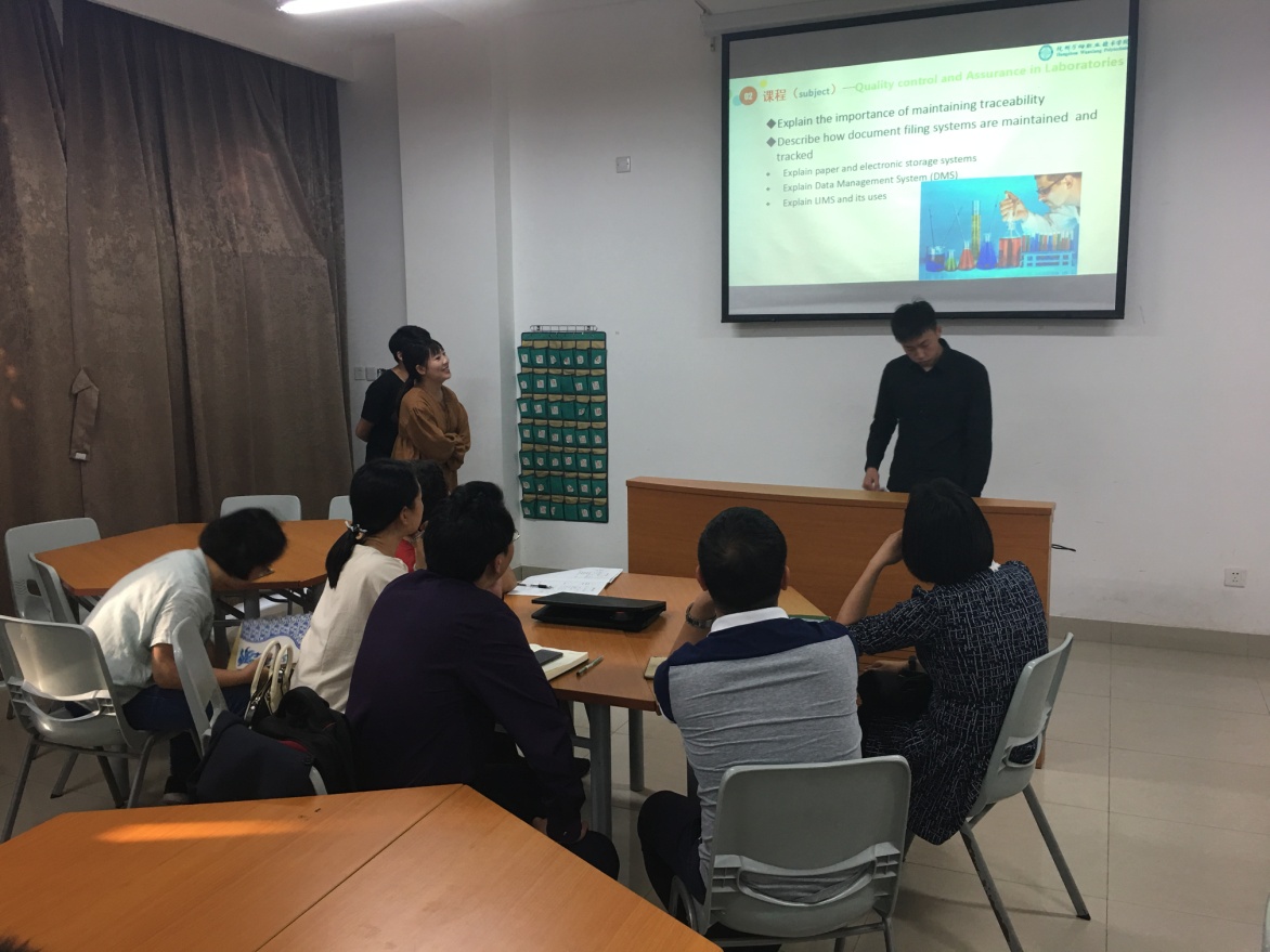 这次新加坡交流项目共去了六位同学。他们分为两组进行汇报,六位同学在新加坡分别分在两个不同的班级学习,他们主要是在新加坡工艺教育学院(ITE)与那边的同学一起学习,主要学习三门课程。第一门课程是《分子生物学》,第二门是《分析生物化学》,第三门是《质量控制管理》。六位同学主要针对在ITE的上课内容,以及做过的实验进行汇报,同时,还汇报了学校的生活,以及他们在实验室管理上可取之处。经过在新加坡25天的学习,同学们巩固了专业知识,对实验室管理也有了一些不同的认识和看法。将国外的实验室管理与食品专业的实验室进行比较,吸取精华,去其糟粕,实际应用到食品专业的实验室上,对实验室可改进方面做出提升计划,让实验室变得更加完善。
