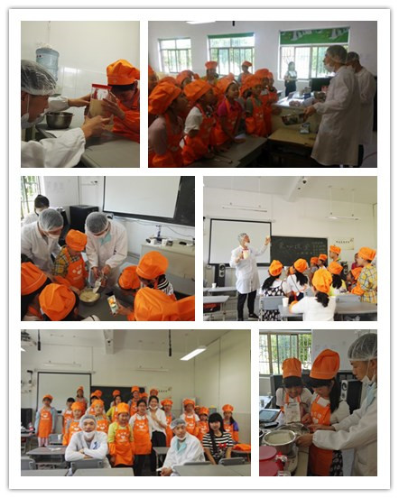 烘焙模块的内容为纸杯蛋糕、松饼的制作。老师们通过原材料展示、配方说明、制作方法示范等方式进行授课,并在多个环节邀请小朋友一起动手参与。在大家的积极参与和共同努力下,纸杯蛋糕和松饼的制作都非常成功,尤其是小朋友们看着自己动手制作的成品展现在面前时都无比兴奋与激动。在制作中,不仅体验到了制作的乐趣,掌握了制作工艺流程,更重要的是在制作过程中明白了食物营养及食品安全的基本要求。
