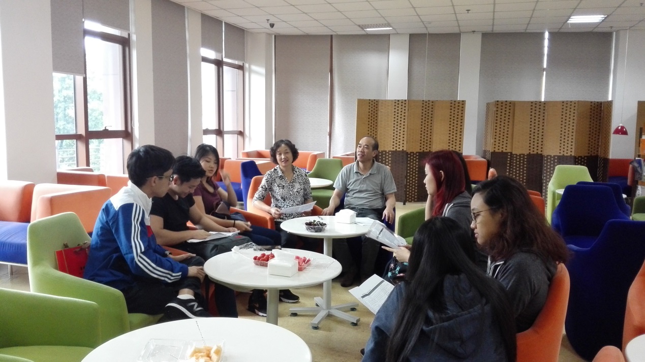 6月13日下午,系主任张海松,张倩教授,任国平、王艳老师及2015级学生志愿者与新加坡7位学生在图书馆咖啡吧举行了师生见面会,见面会由张倩教授主持。