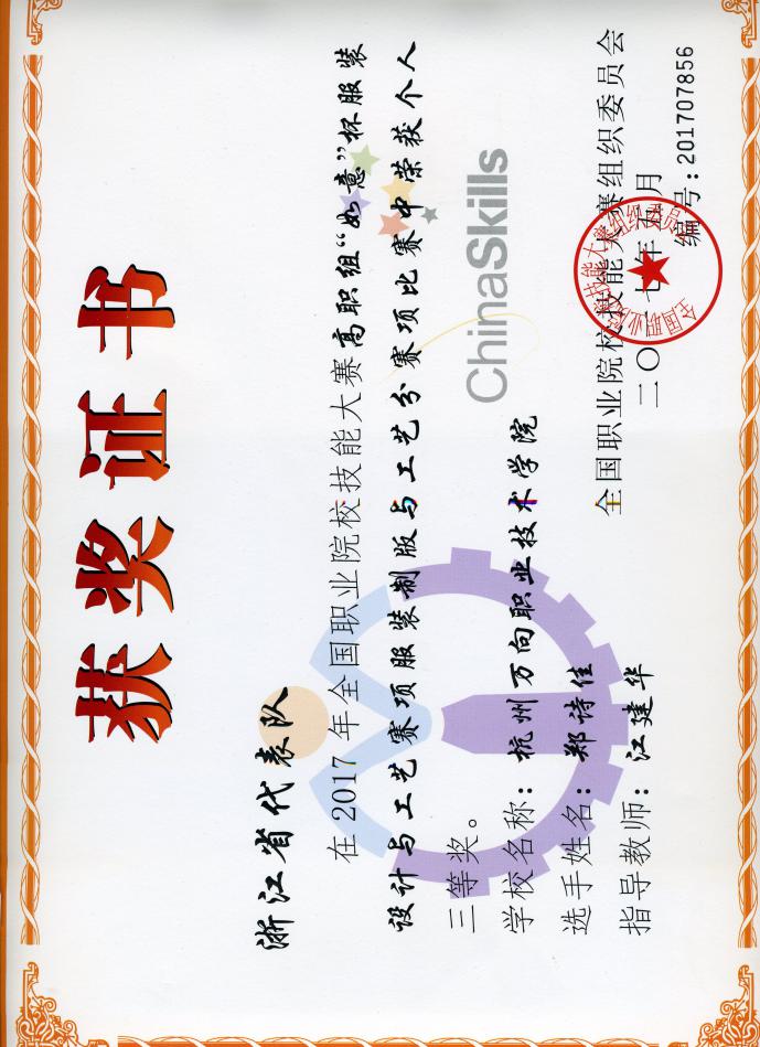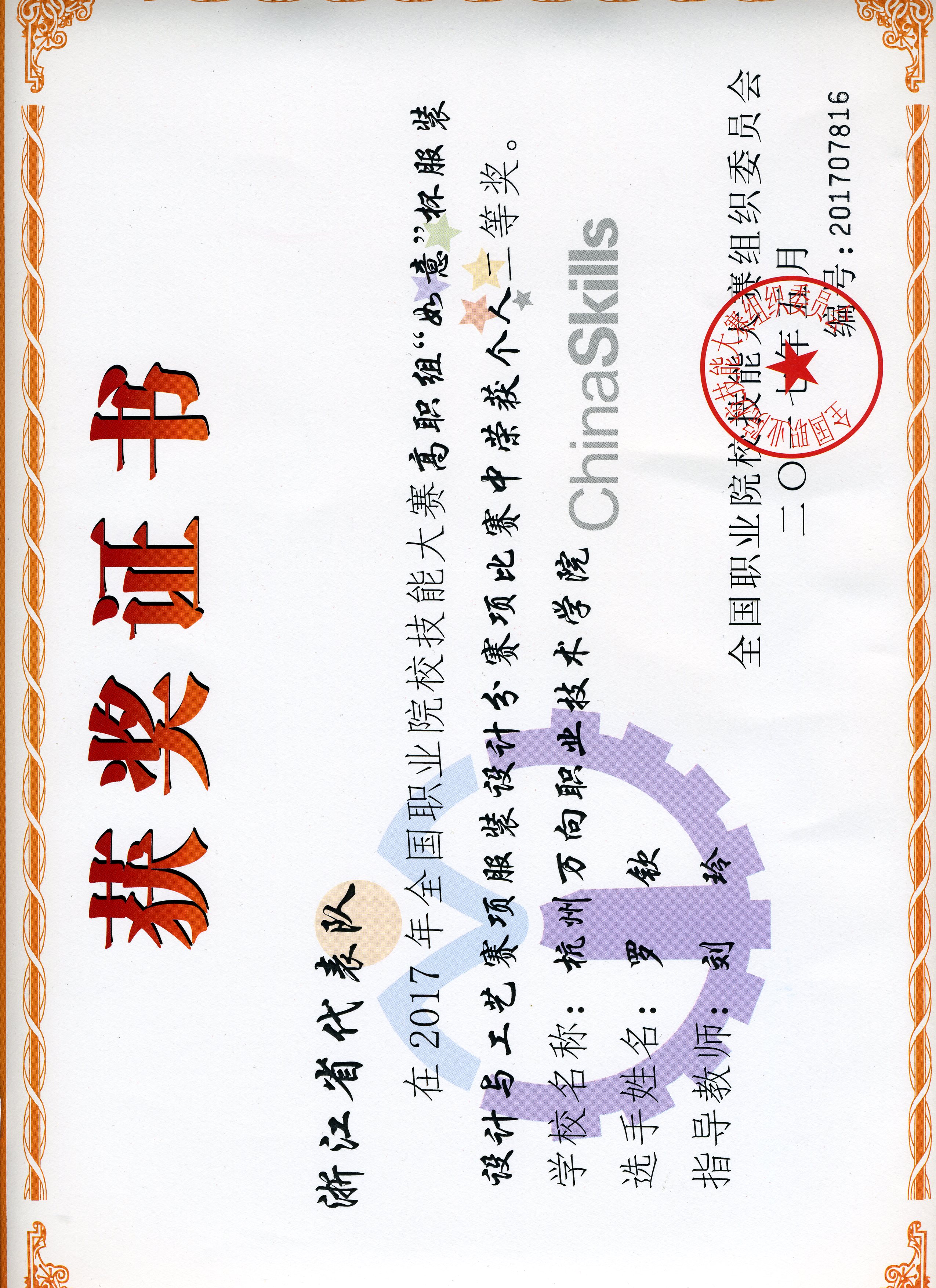 6月2日,全国高职高专服装技能大赛在山东省潍坊市举行,经过两天的激烈角逐,我院的参赛学生罗钦获二等奖、郑诗佳获三等奖。