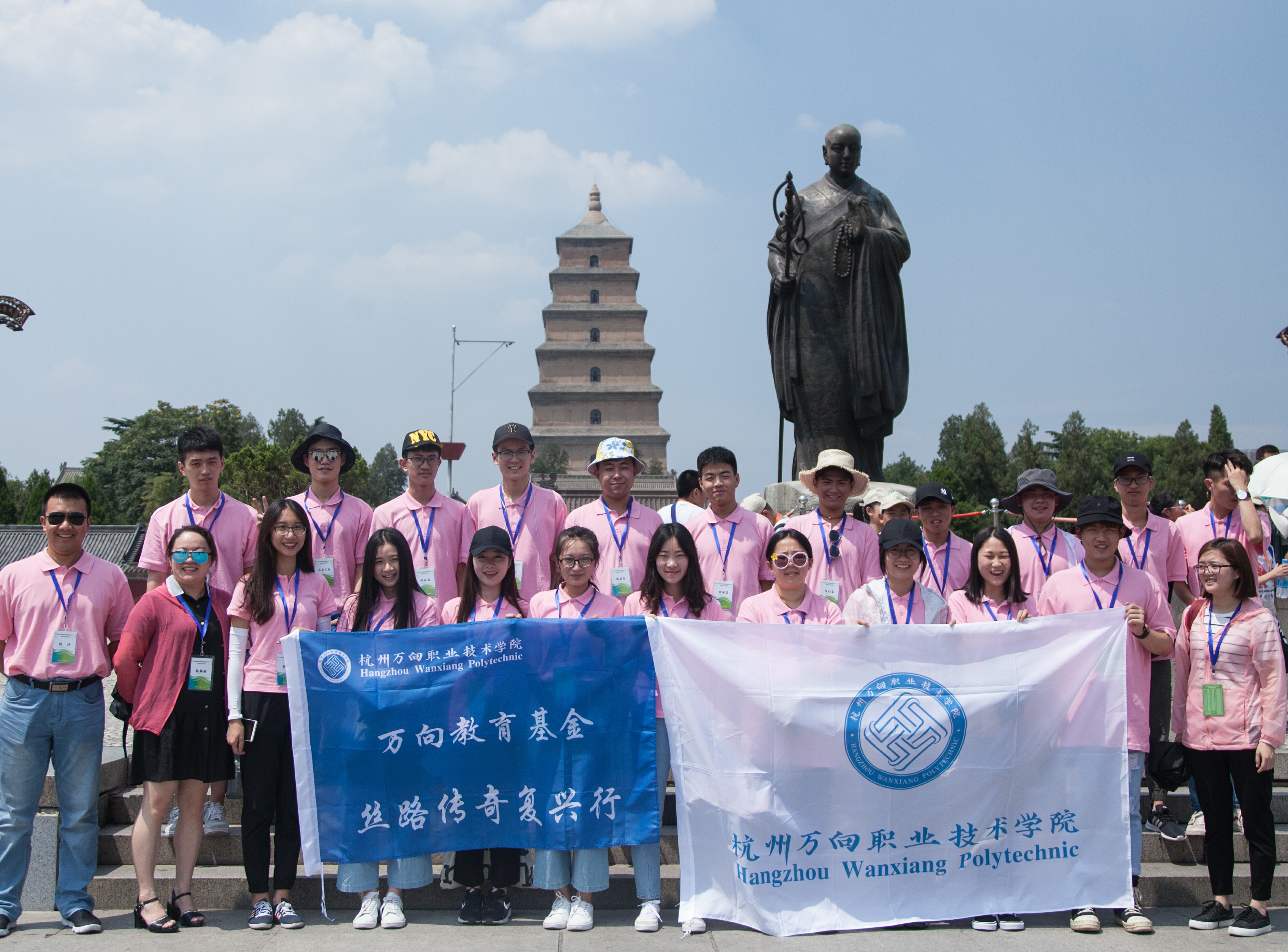 一群万向学子,行万里路,开始我们的“西游记”。在大雁塔前瞻仰玄奘法师塑像,历经岁月沧桑的千年宝塔,仿佛在昭示当年的盛况和繁华。底端上书“民族脊梁”就是在盛赞眼前的玄奘法师,26岁只身一人为了自己心中的理想开始了如此传奇的一生。邂逅这巍峨的大雁塔,仿佛可以再次依稀听到法师坚定的决心:宁可西行一步死,绝不东归半步生……