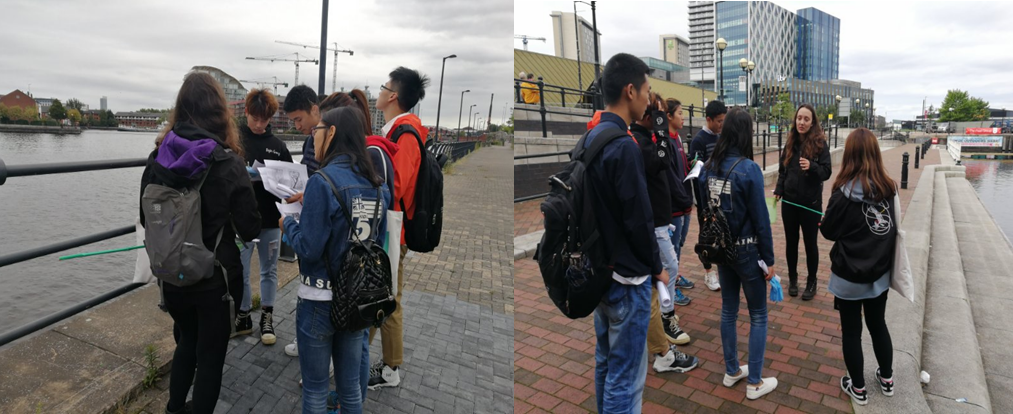 8月29号,Natalie博士带领我们前去曼彻斯特运河进行水样的采集和检测。Natalie博士向我们介绍了曼彻斯特城市(Manchester City)的工业发展、污染历程及污染治理情况。随着工业革命的发展,曼彻斯特运河成为船只来往的重要通道,污染也随之被带到了这里,同时河边工厂的废水排放也给运河带来不小的污染。随着经济的快速发展,运河的水质状况也不似从前,尽管已经治理了多年,河底仍然残留许多污染物,这些污染物质一直在影响着运河水质,因此我们今天前去运河进行水质采样检测分析。