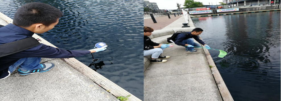 Natalie博士确定了今天进行运河水质检测的两个采样点(分别是BridgewaterCanal和Salford Quays,GPS定位)。随后,Natalie博士为我们详细地讲解了水样采样的方法和注意事项,以及确定运河水样中pH值、溶解氧含量、电导率作为水样检测参数。在我们开始水样采样前,Natalie博士为我们详细介绍了便携式pH仪、溶解氧仪、电导率仪的使用原理、使用方法以及注意事项,并给我们做了示范。
