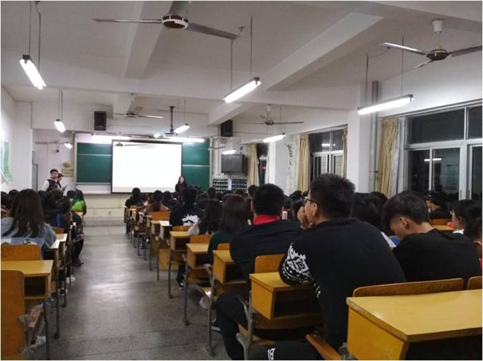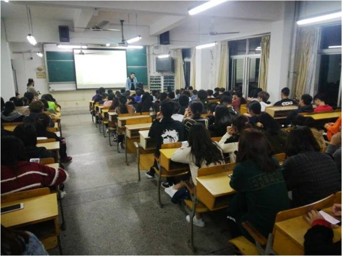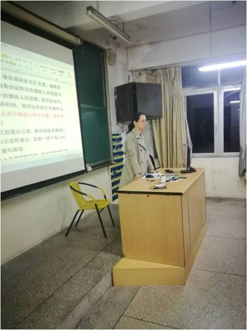 图为17级年级辅导员向同学们介绍班委职责并为同学们解答疑问