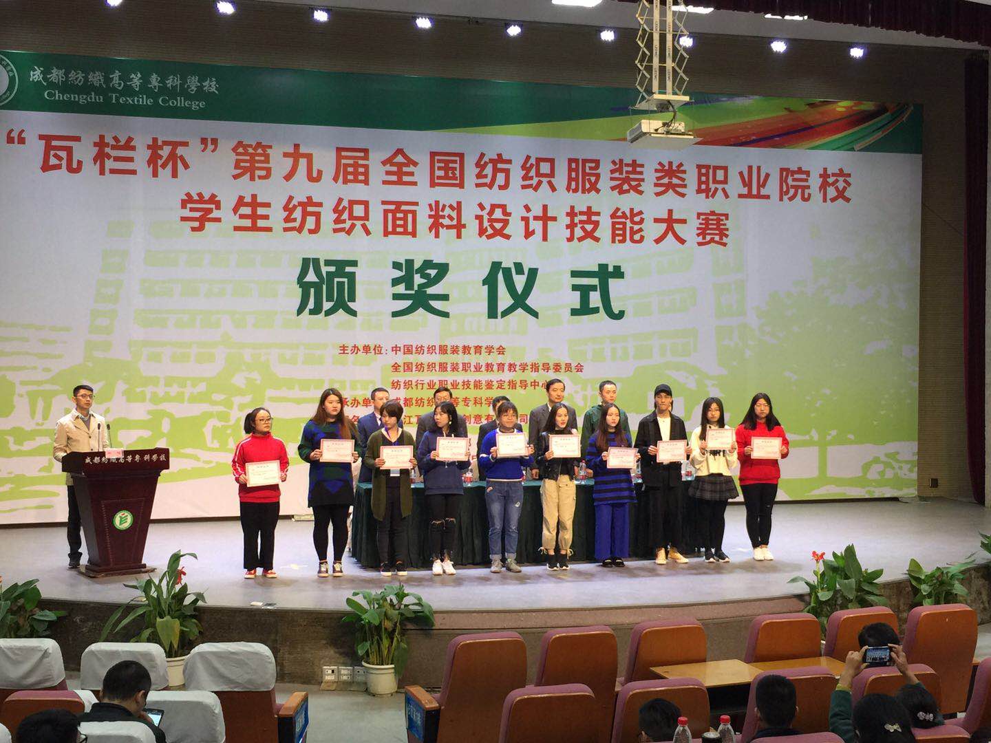 2017年10月27日至29日,由全国纺织服装职业教育教学指导委员会、中国纺织服装教育学会、纺织行业职业技能鉴定指导中心主办,浙江瓦栏文化创意有限公司全程冠名的第九届全国纺织服装类职业院校学生纺织面料设计技能大赛理论及实操比赛在成都纺织高等专科学校举行。来自全国各地18所纺织服装类职业院校近200名学生参加比赛。我院3名服装专业学子参加了比赛。