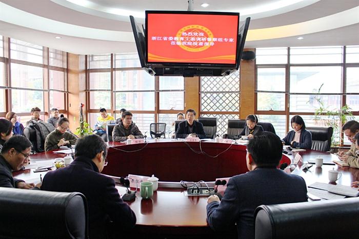 12月7日,浙江省高校基层党建工作专项调研检查组一行5人在浙江特殊教育职业技术学院党委副书记王金林的带领下,对我院基层党建工作开展了专项调研。学院举行了党建工作汇报会,党委书记莫晓平,党委副书记、副院长朱仁学,党委委员、纪委书记吴奕兆,党委委员、组织部长胡建华,党委委员、宣传部长应瑶,学工部长杨人卫以及各党总支、支部书记参加会议。