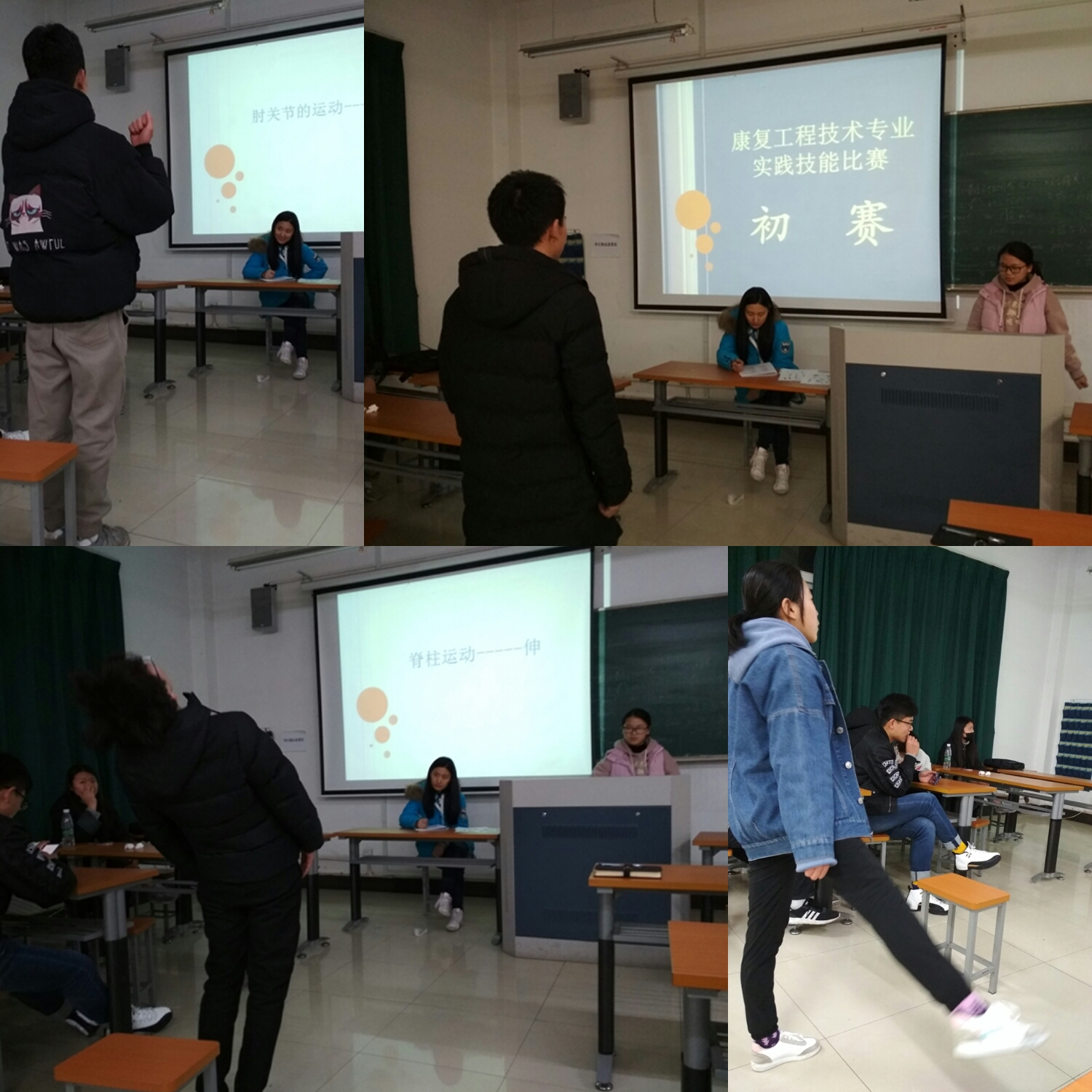 康复工程技术专业的实践技能大赛之形体运动于2月11日下午开展,此次比赛以重在考察同学对关节运动的掌握度。比赛开始前,参赛者认真复习专业知识,比赛中尽情发挥,赛出水平。。此次比赛,检验了检验了同学们的专业水平,对提高同学们的专业素养大有裨益。