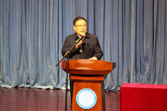 胡坚指出,习近平新时代中国特色社会主义思想最根本的是解决了八个明确,当下经济发展面临着三大历史机遇:互联网、文化、一带一路,学院师生要抓住机遇,乘势而上,把自己的命运、学校的命运同国家命运、民族命运联结起来,努力作出贡献。