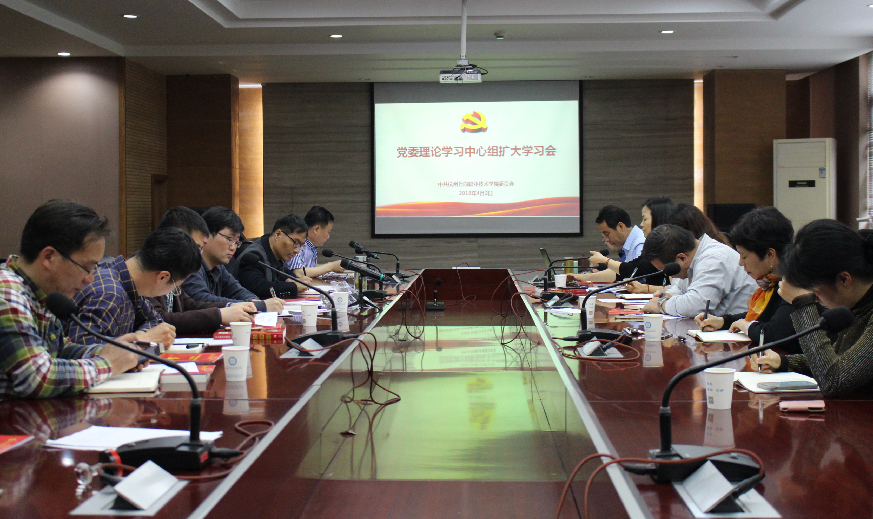 4月2日下午,学院党委理论学习中心组会议暨2018年度基层党建和群团工作目标管理责任书签订仪式在新校区6213会议室举行。