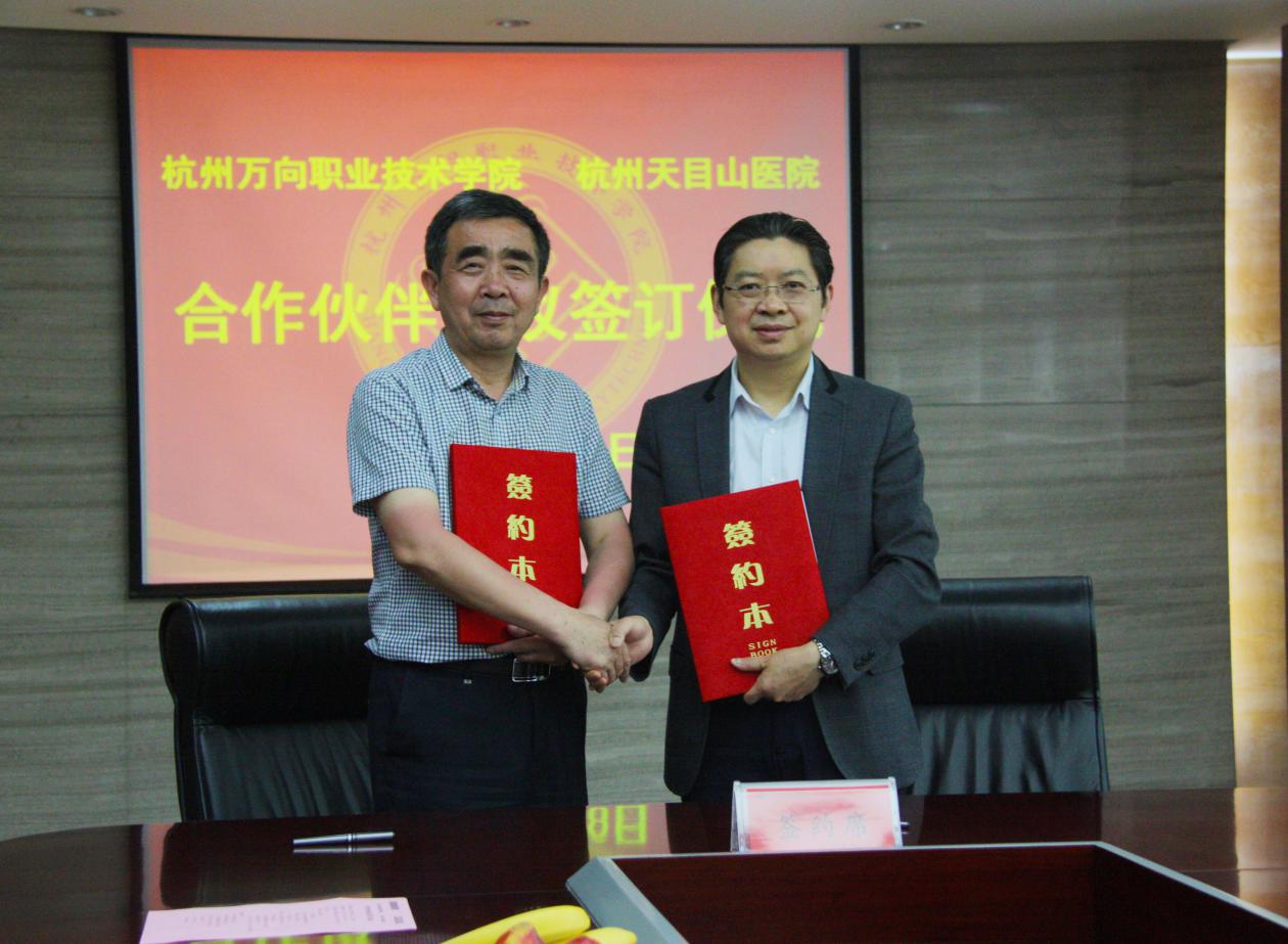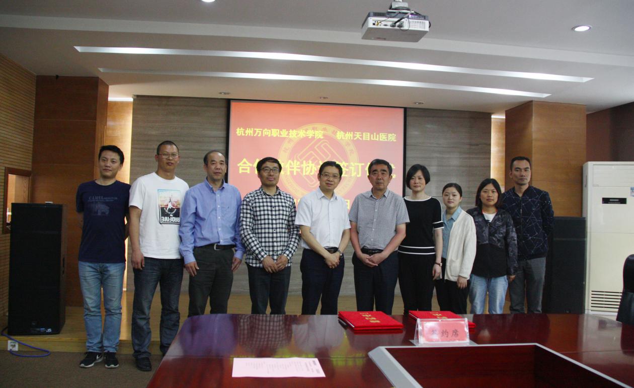 2018年5月10下午,我院与杭州天目山医院在行政楼6213会议室签订校企合作协议。会议由学院副院长朱仁学教授主持,教务处长胡建华,环境健康与食品科技系主任张海松,康复团队全体教师,杭州天目山医院梅贤良院长等相关负责人共同参与本次会议。
