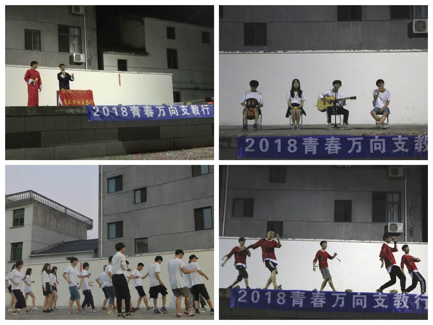 课程进行之余,支教团还深入村镇宣传“十九大”、国际化:使教育更美好、“五水共治”、防电信诈骗、反邪教、垃圾分类、防艾滋等方面知识,得到了当地村民的热烈响应。20日晚的文艺下乡晚会更是得到了梓桐镇政府的充分肯定,也给村民留下了美好的印象。
