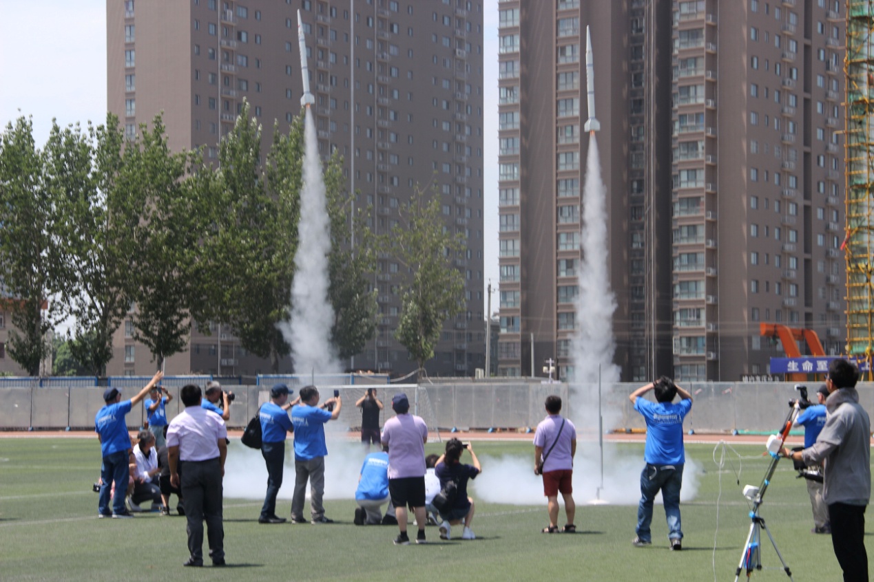 杭港同学共同制作固体助推滑翔机