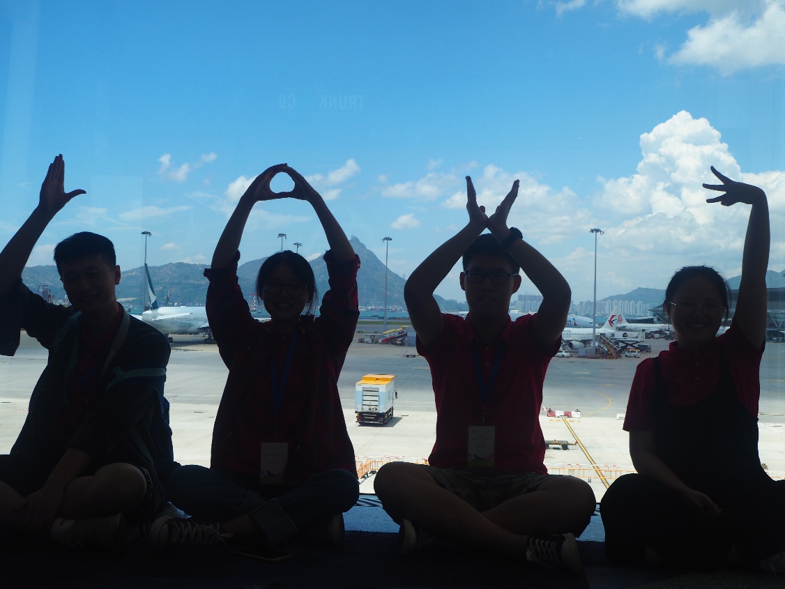 学员在香港机场等候转机飞往新加坡