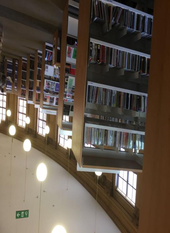 告别艺术之地我们来到文学之地-----图书馆,这是一个人与人之间互相沟通的纽带,可以通过它沟通思想。进门那份安静使我深深体会到了读书的氛围是如此美好,那里整齐有序的摆放的书籍像有着生命的精灵在向你招手,期待与你交友。听!音乐在那里轻轻的响起,这是在告诉我们这是音乐图书馆,也让我们领略了音乐的魅力。