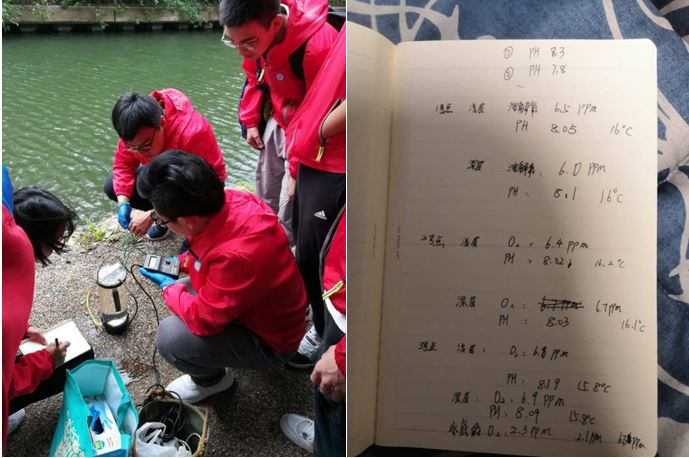 首先由他们为我们示范了采集水样和检测的过程,这与我们在学校中学到的方法大同小异,所以我们在操作的时候上手很快,还获得了他们的称赞。在采集和检测过程中,我们也积极的向他们提出疑惑,他们也耐心地为我们解答。
