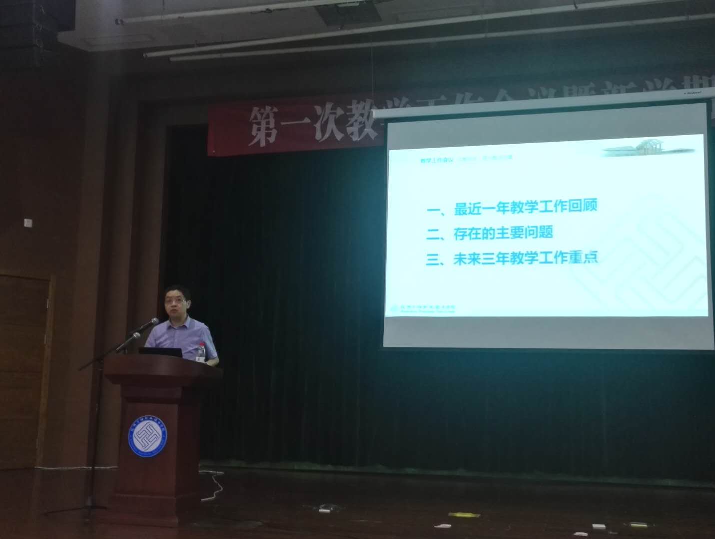 为进一步落实学院十三五策略规划制定的工作目标和“专业优化年”、“改革深化年”的各项任务,新学期开学第一天,9月3日下午,学院在小报告厅召开了全体教职工参加的第一次教学工作会议。会议由朱仁学副院长和高兰副院长分别主持。